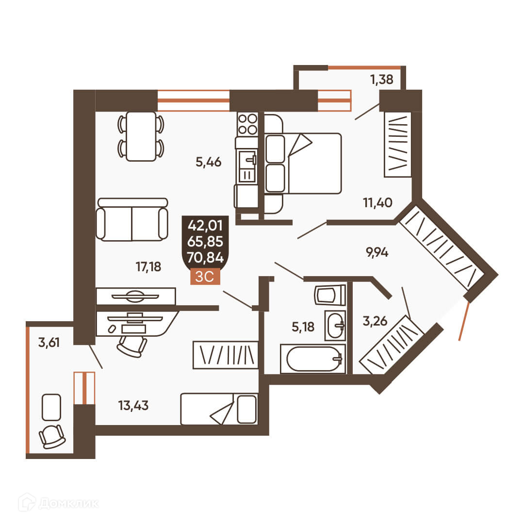 Площади квартир
