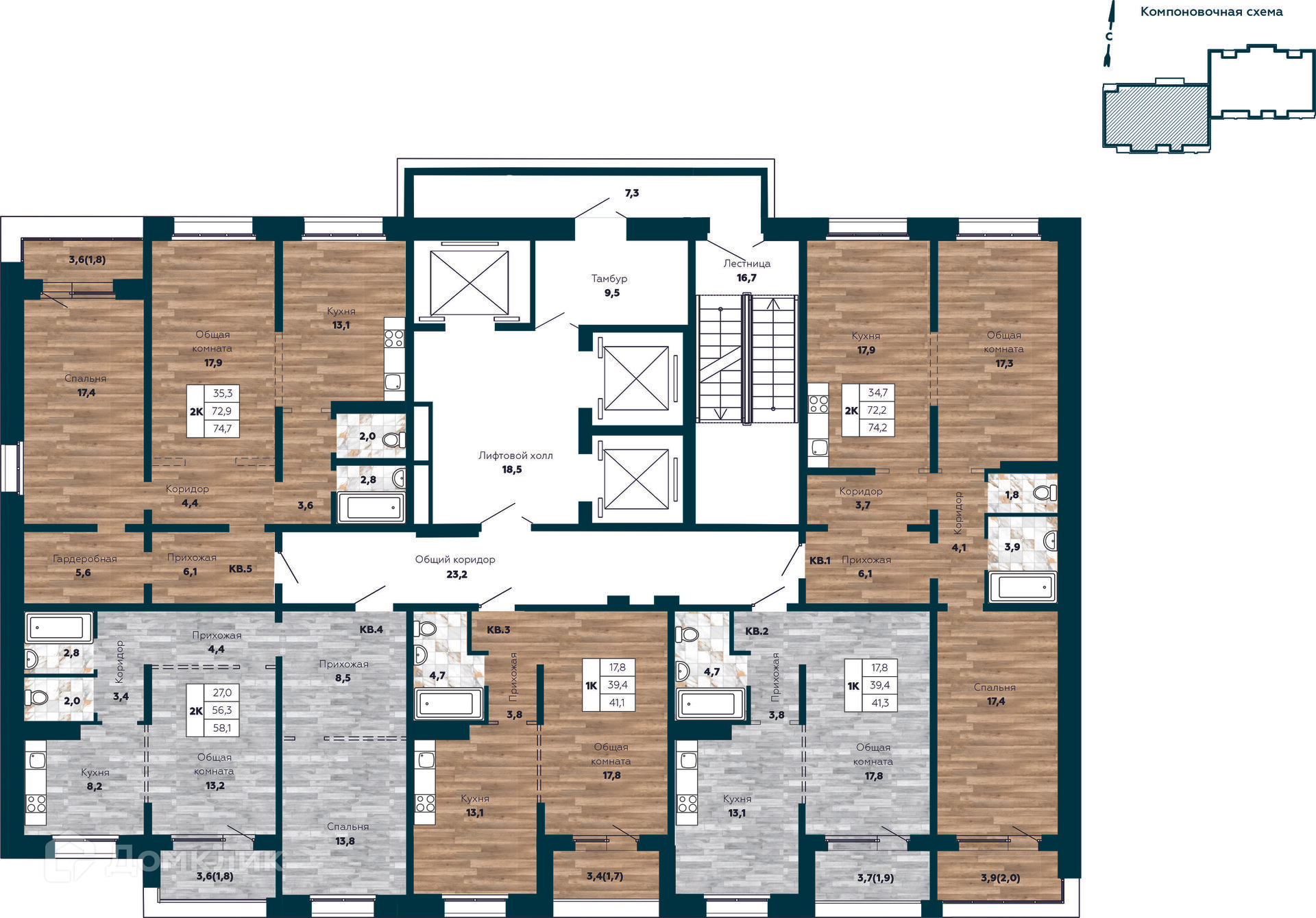 Площади квартир