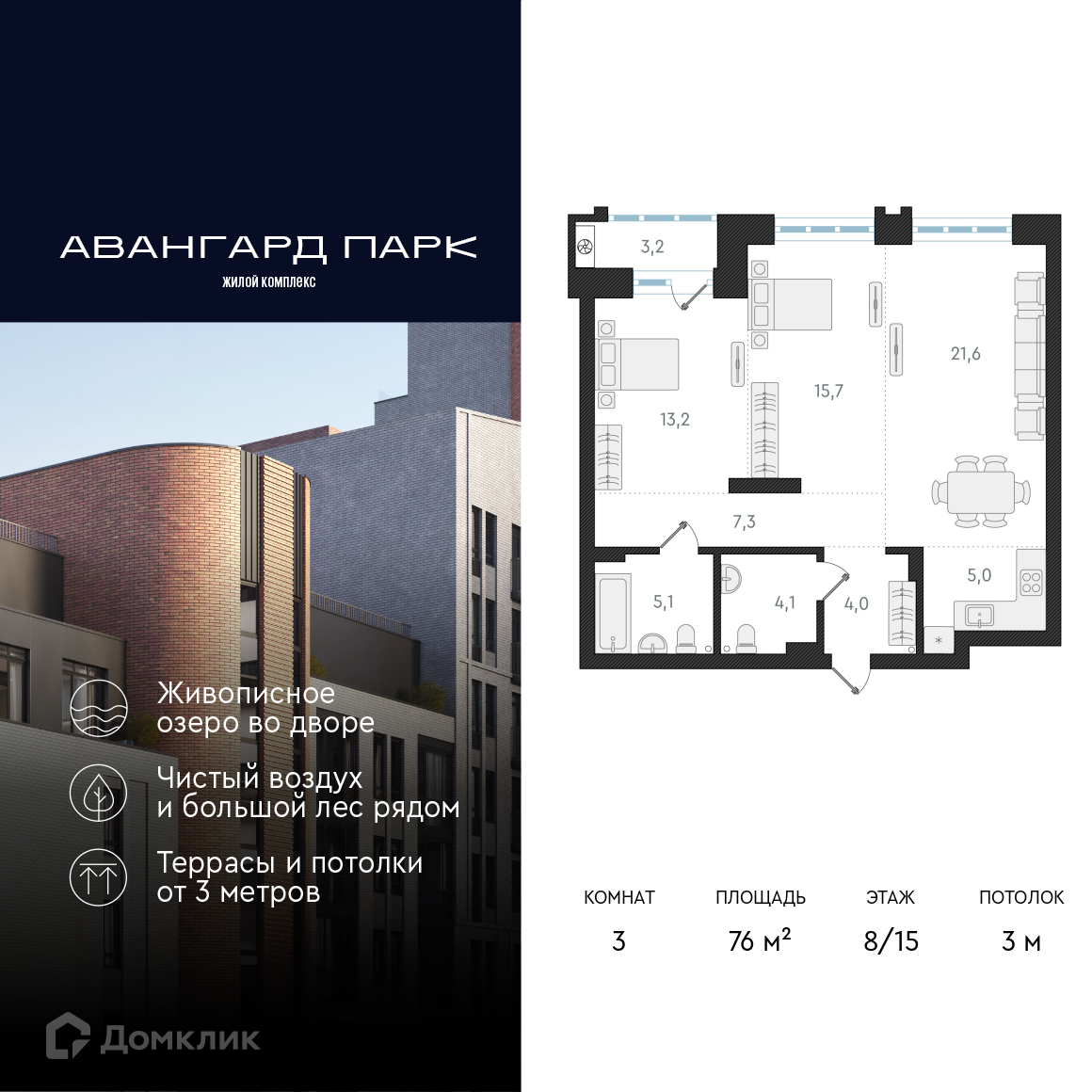 Доступна к покупке 3-комнатная квартира в востребованном жилом комплексе "ЖК "Авангард Парк"" 🏢.