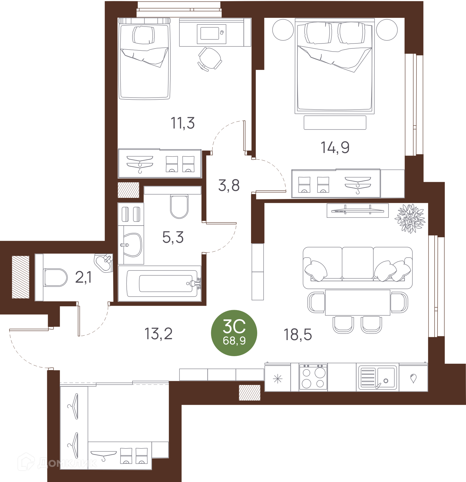 Площади квартир