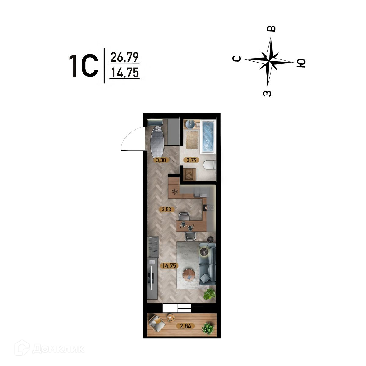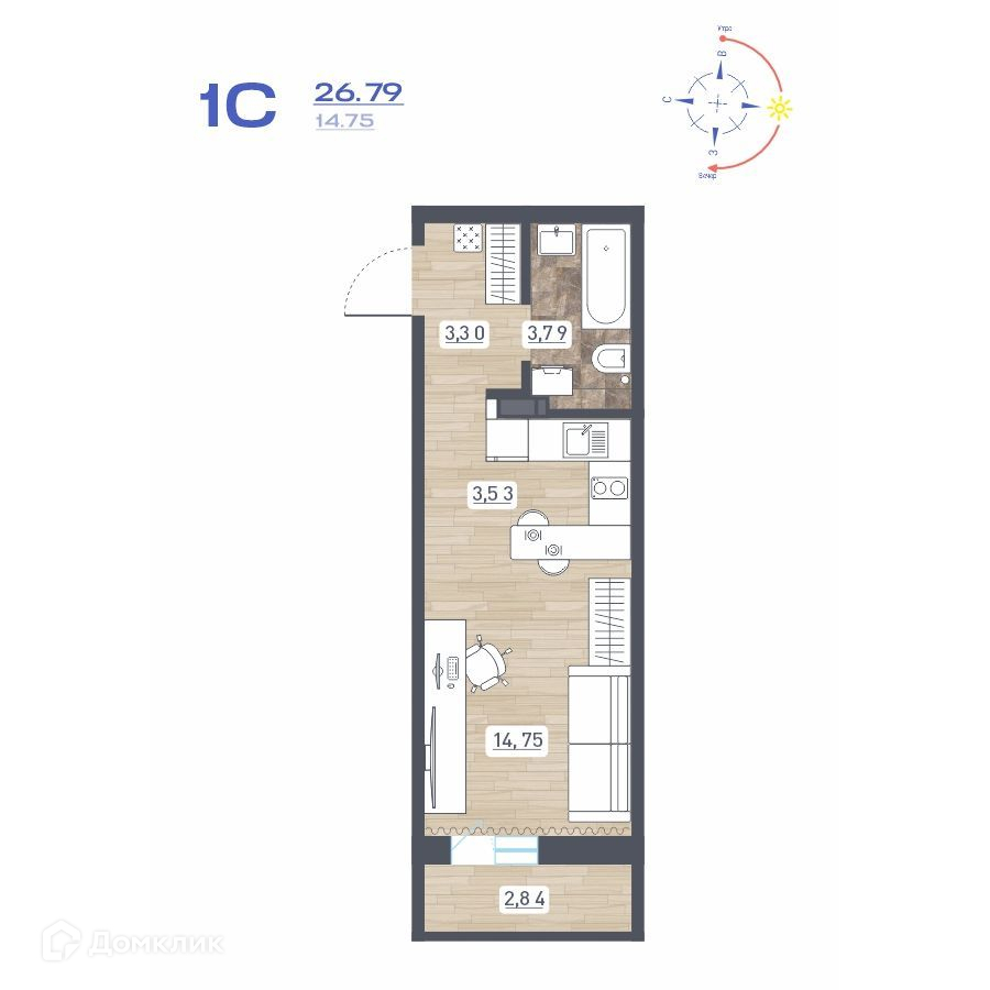 • Площадь - 26.79 м²