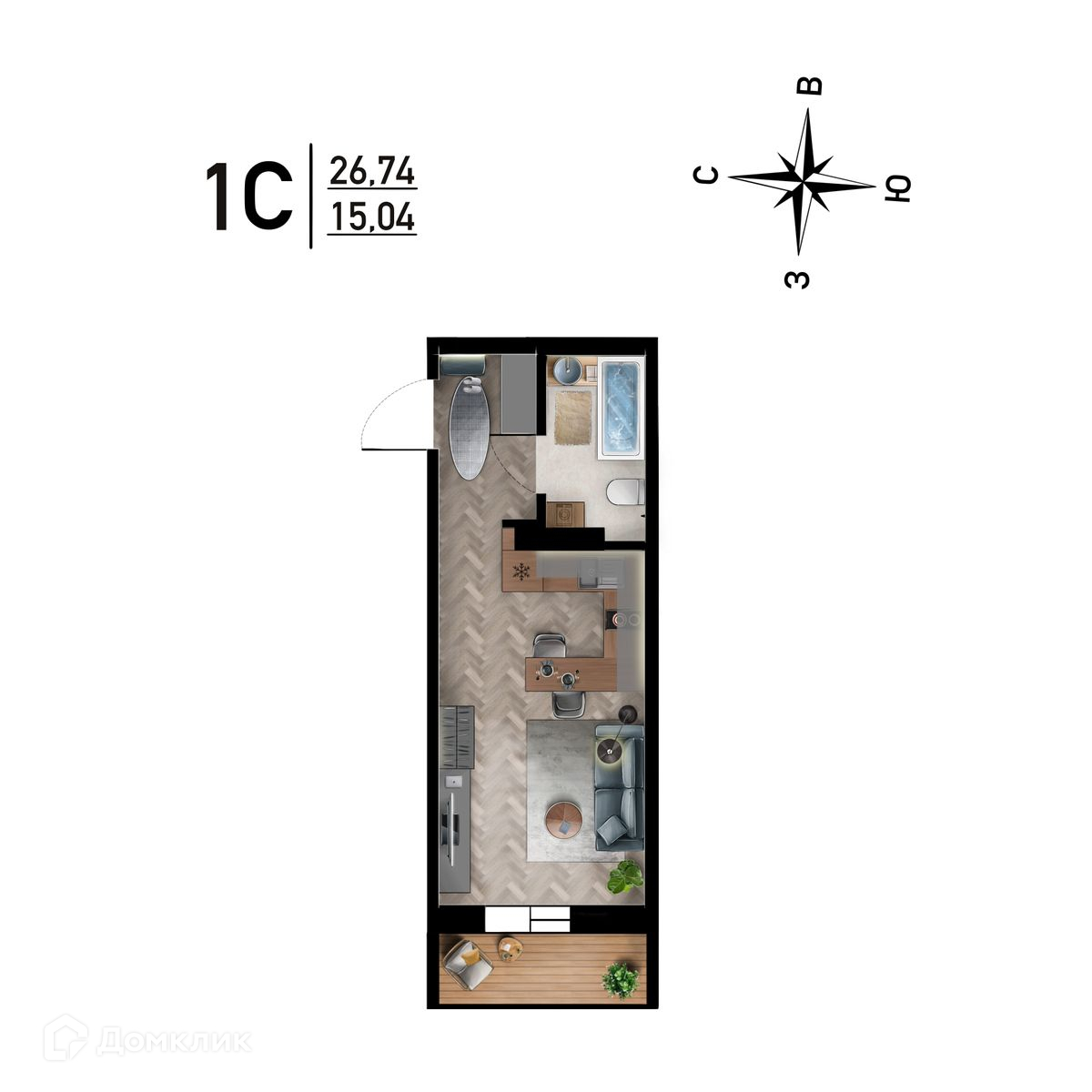 • Площадь - 26.74 м²