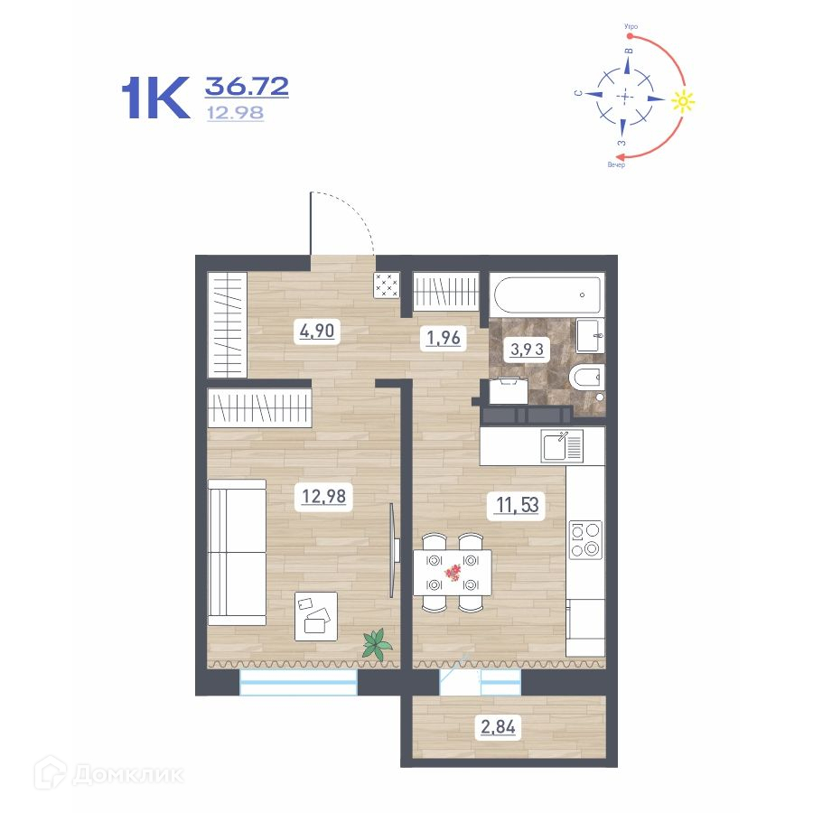 • Площадь - 36.72 м²