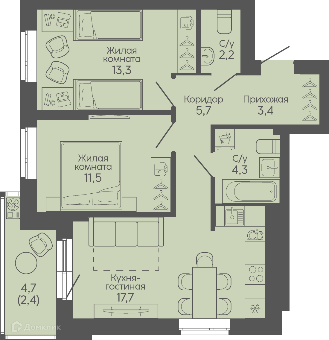 Площади квартир