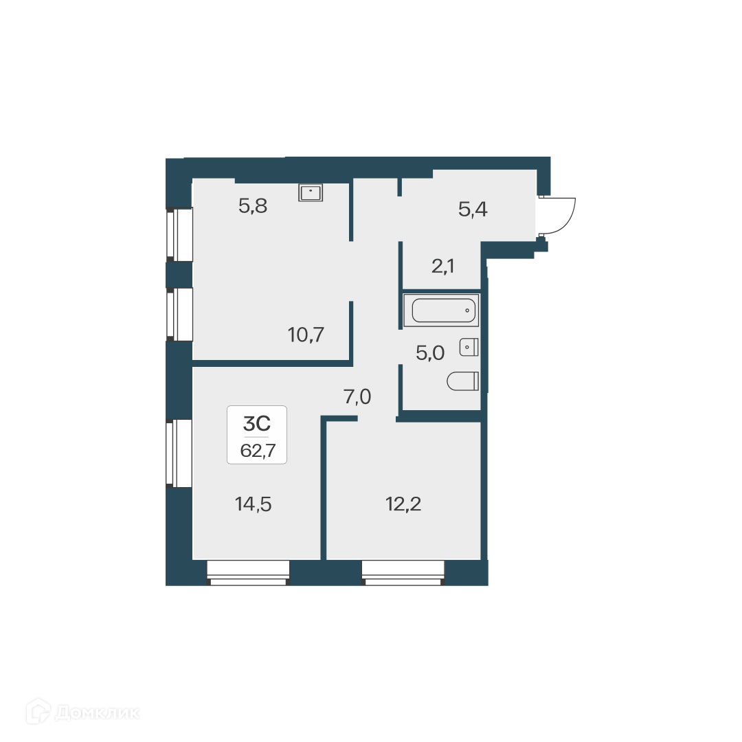 Планировка 3 комн. в ЖК Расцветай на Красном