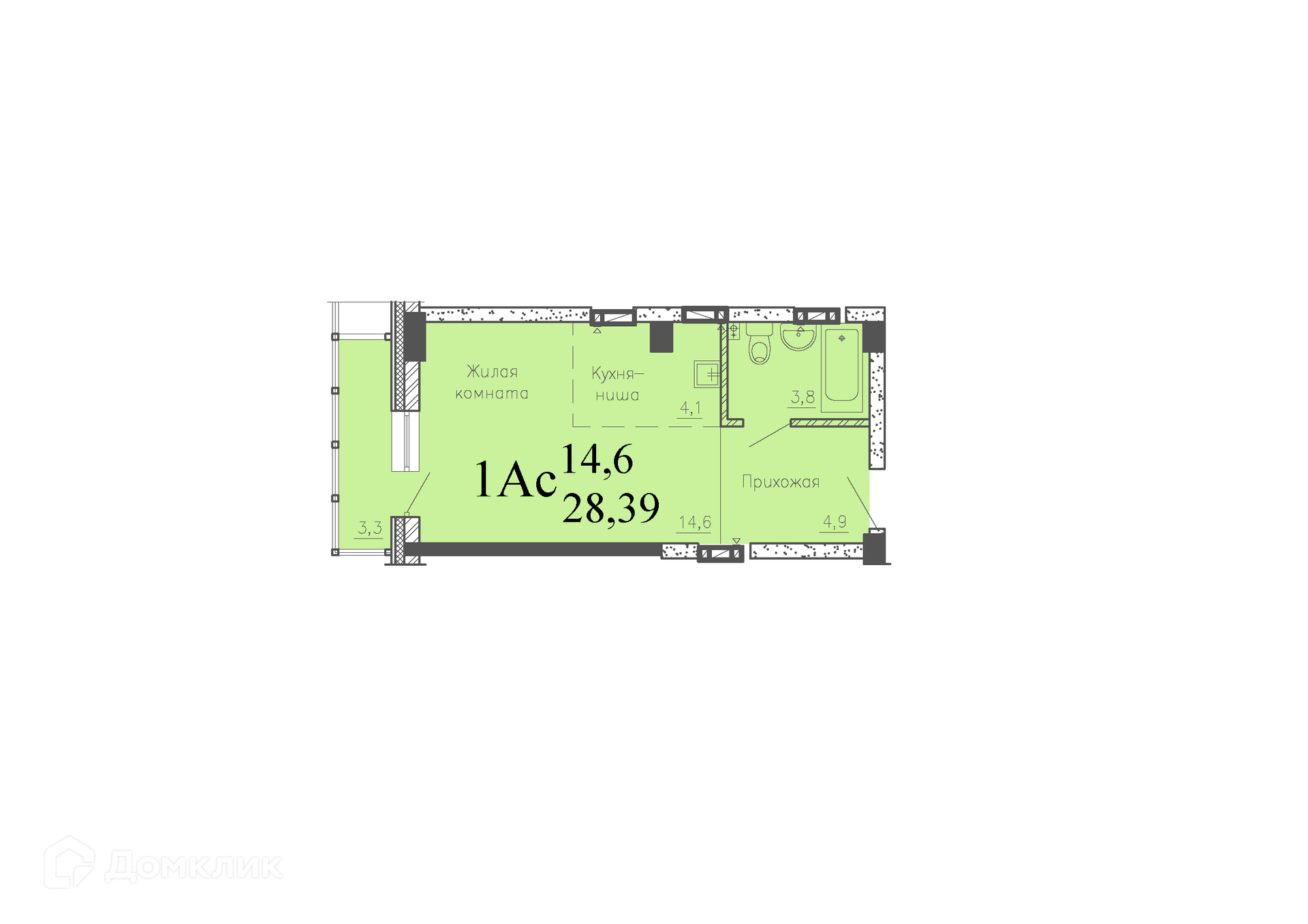 • Площадь - 27.4 м²