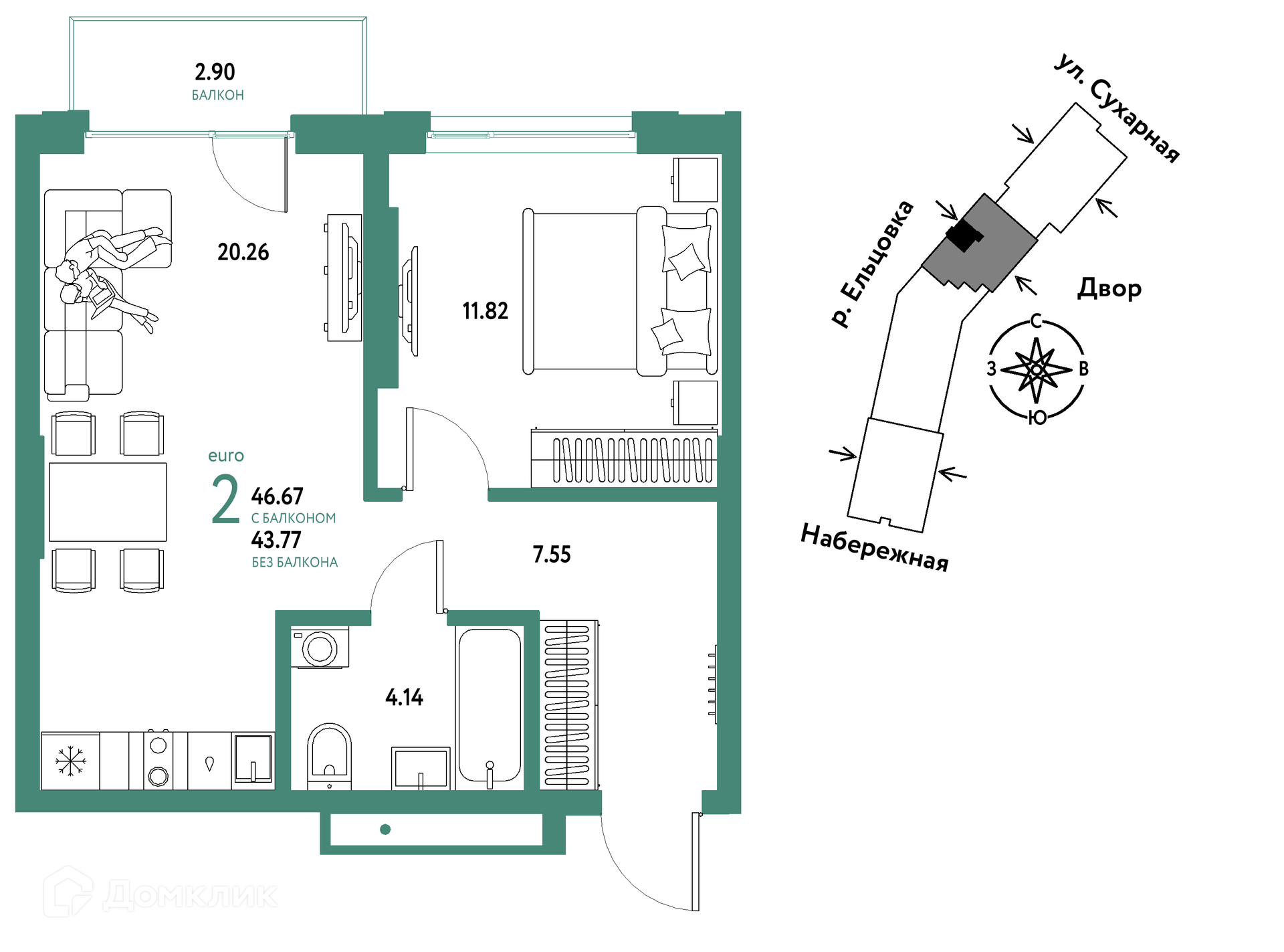 • Площадь - 46.67 м²