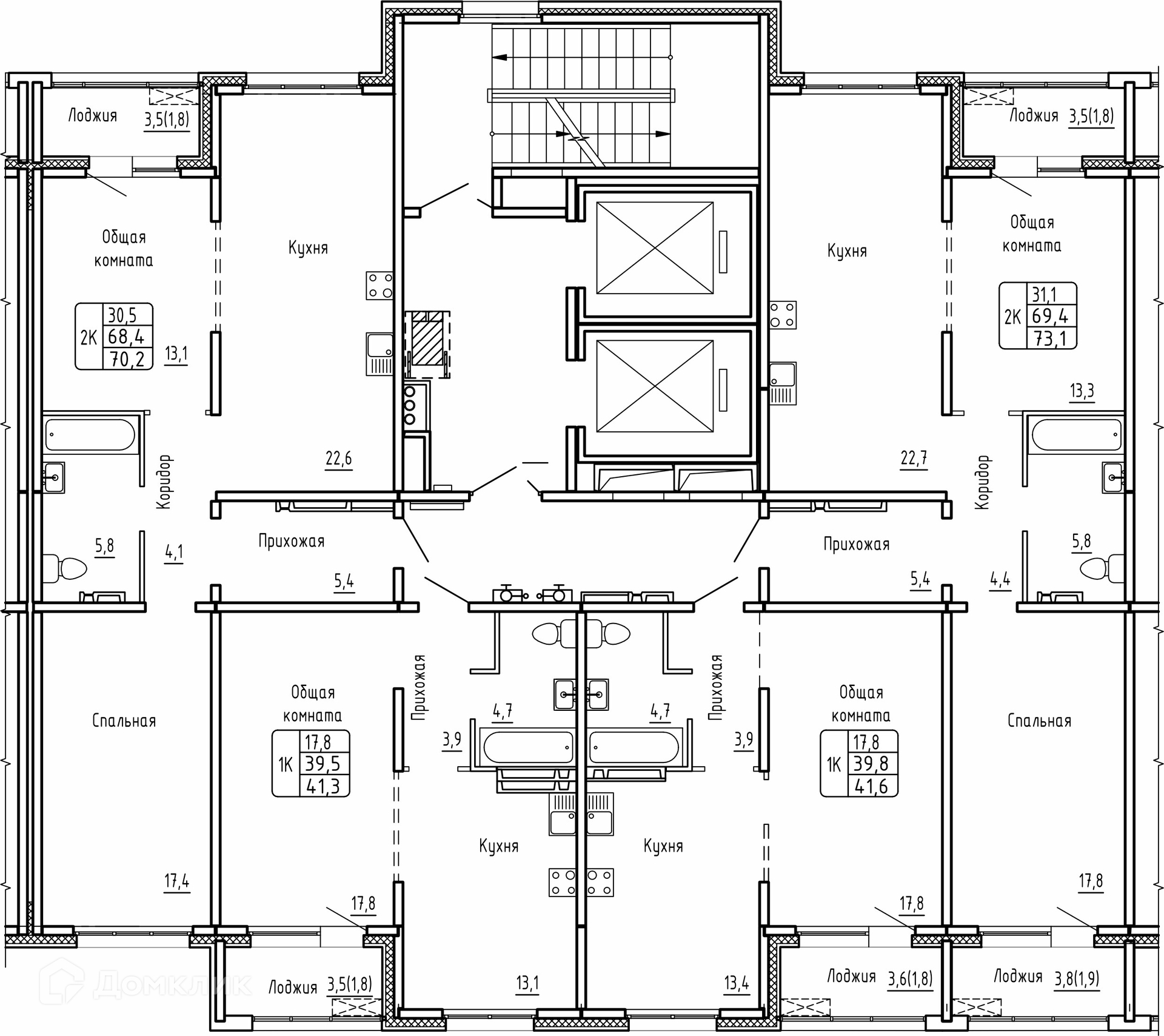 Площади квартир