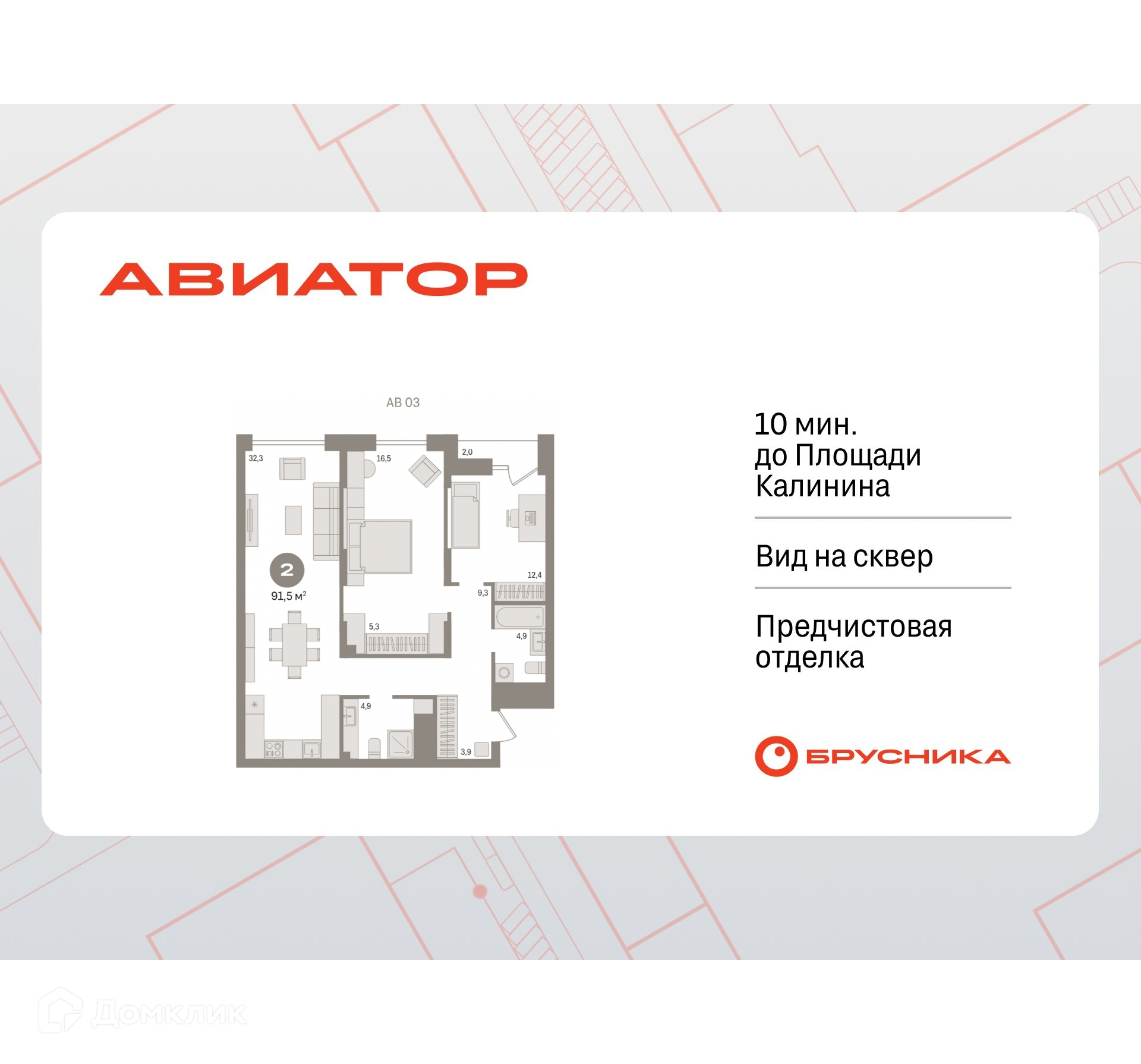 • Площадь - 91.49 м²