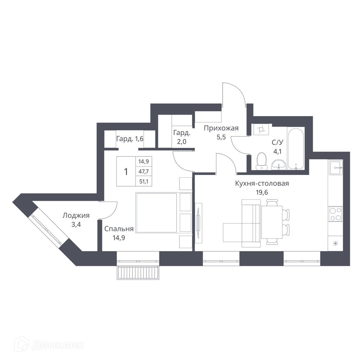 - ✅ Кухня: 19.6 м² — эргономичное пространство.