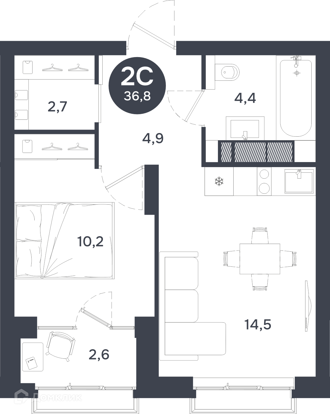• Площадь - 36.82 м²