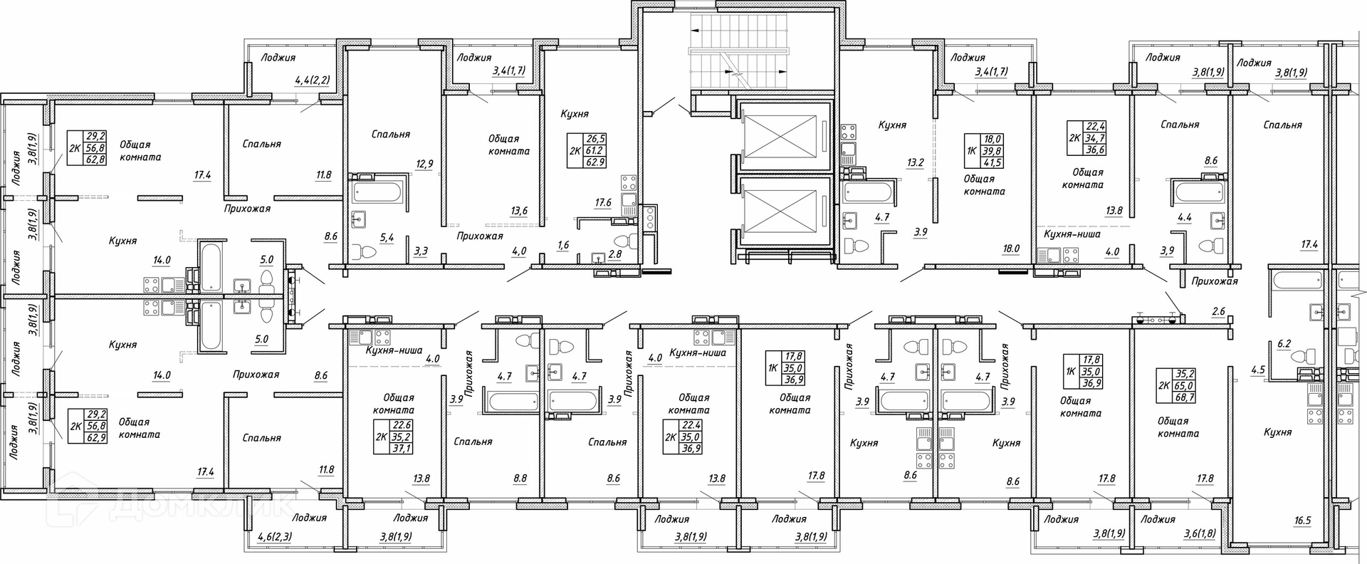 Площади квартир
