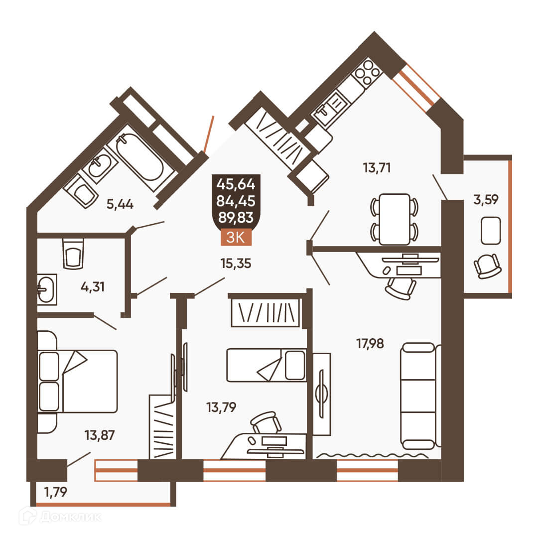 Площади квартир