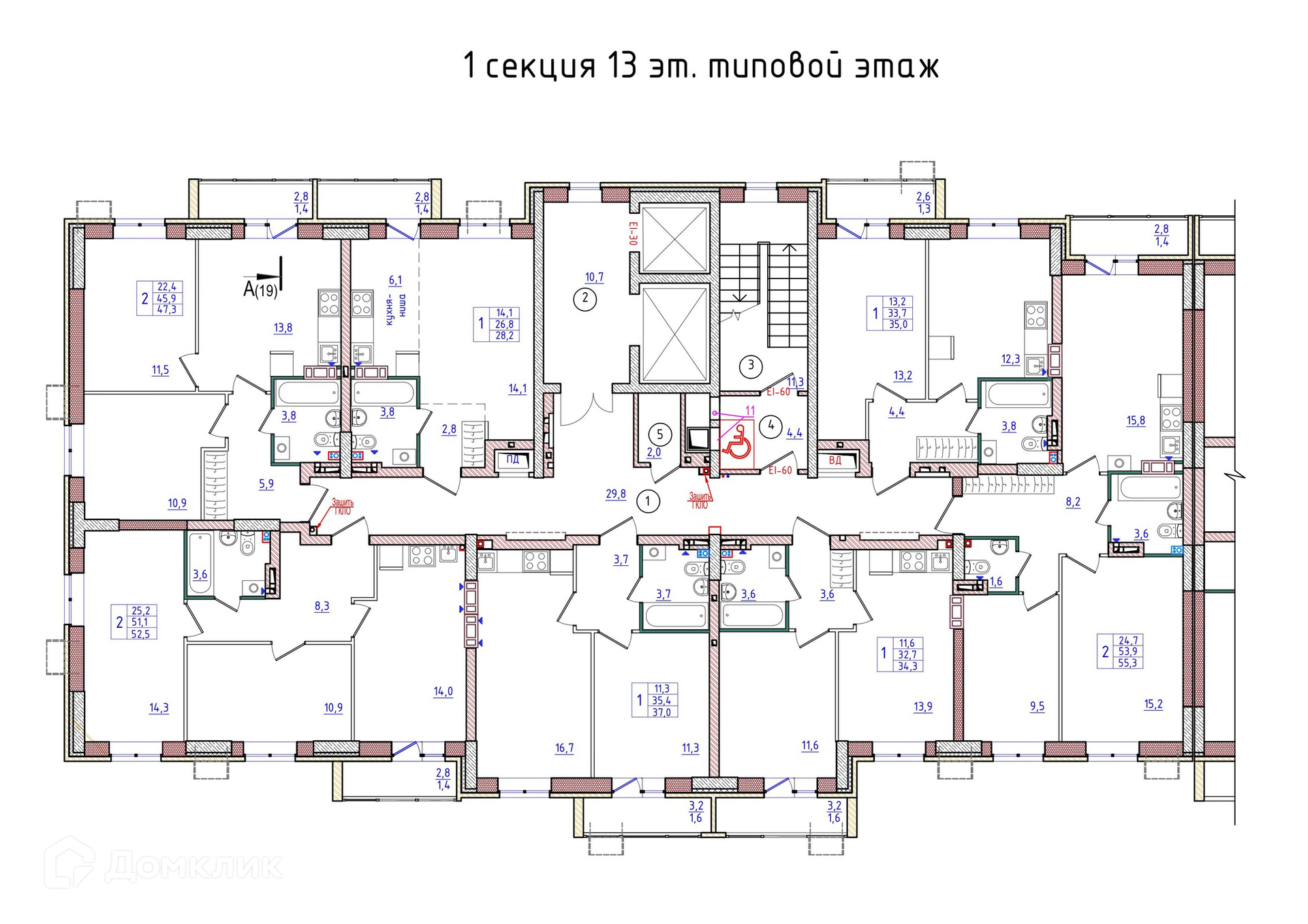 Площади квартир