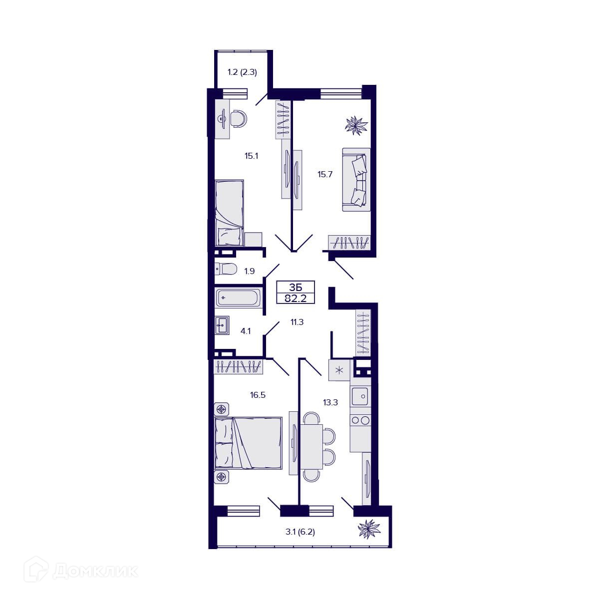 Площади квартир