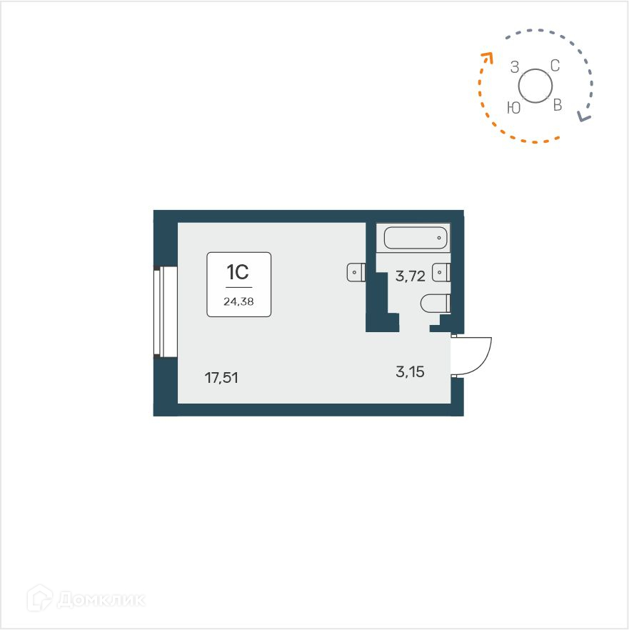 • Площадь - 24.38 м²