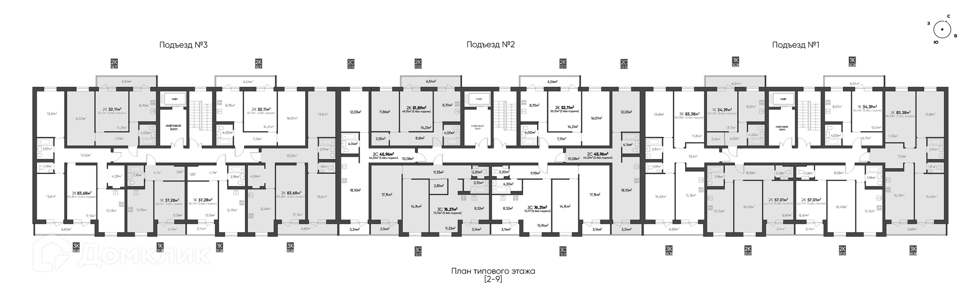 Площади квартир