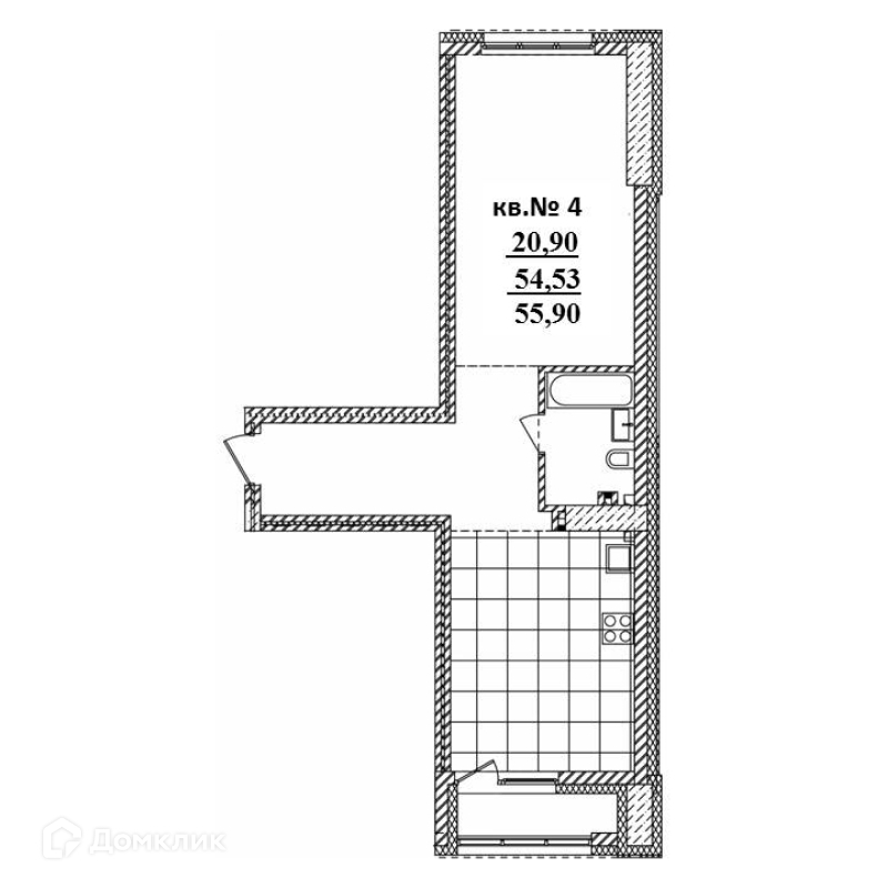 • Площадь - 55.9 м²