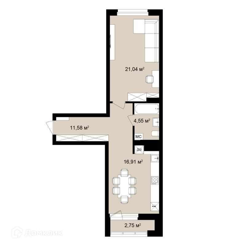 ✅ Уютная жилая площадь: 21.04 м².