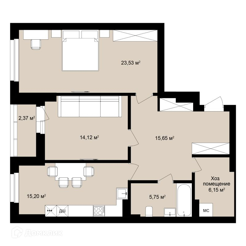 ✅ Кухня: 17.36 м² — идеальна для семейных ужинов.