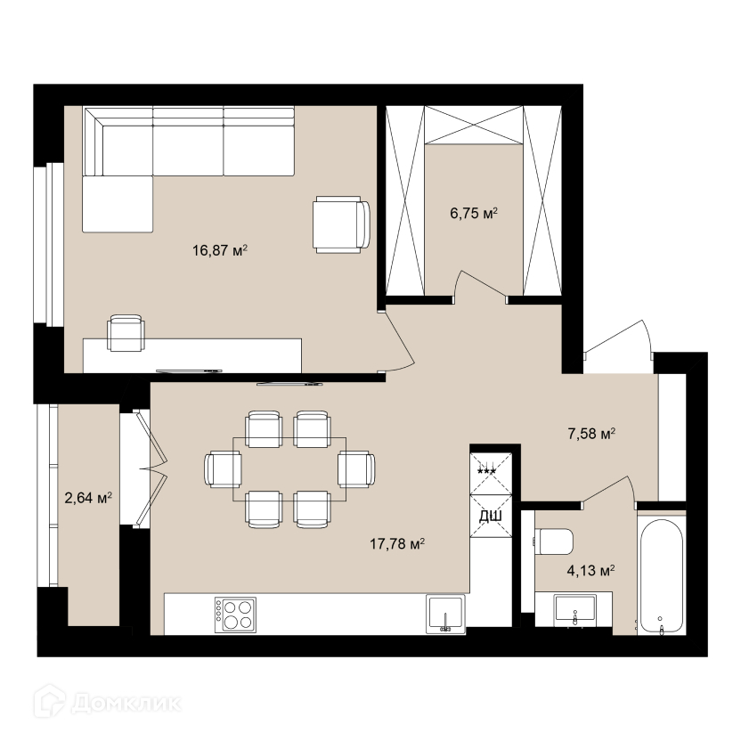 • Площадь - 56.42 м²