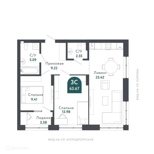 3 комн. квартира в Новосибирске в ипотеку от 229 978 руб/месяц