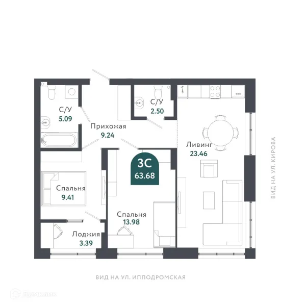 3 комн. квартира в Новосибирске в ипотеку от 174 905 руб/месяц