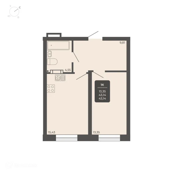 1 комн. квартира в Новосибирске в ипотеку от 43 782 руб/месяц