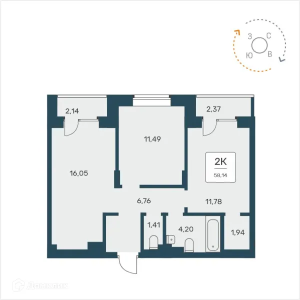 2 комн. квартира в Новосибирске в ипотеку от 63 728 руб/месяц