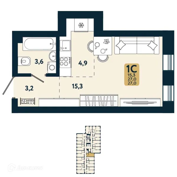 1 комн. квартира в Новосибирске в ипотеку от 48 364 руб/месяц