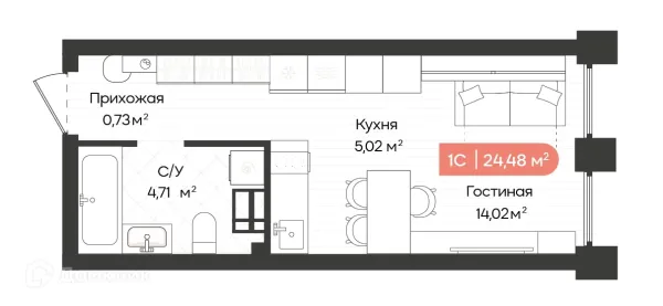 Студия квартира в Новосибирске в ипотеку от 36 869 руб/месяц