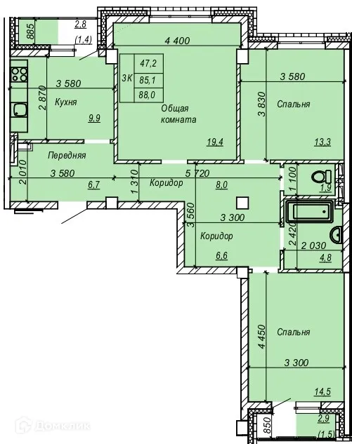 3 комн. квартира в Новосибирске в ипотеку от 63 368 руб/месяц