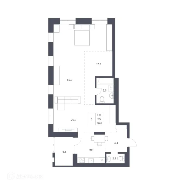 1 комн. квартира в Новосибирске в ипотеку от 101 606 руб/месяц