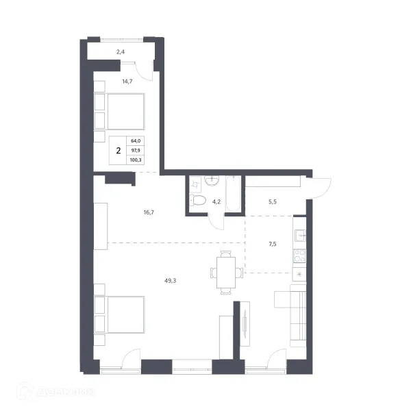 2 комн. квартира в Новосибирске в ипотеку от 103 406 руб/месяц