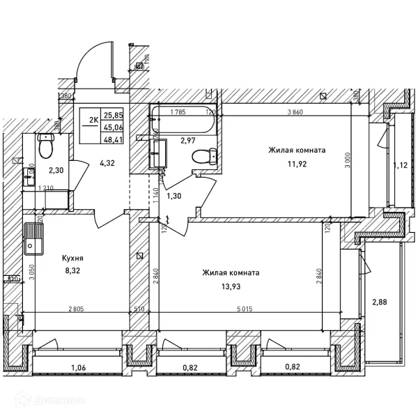 2 комн. квартира в Новосибирске в ипотеку от 97 213 руб/месяц
