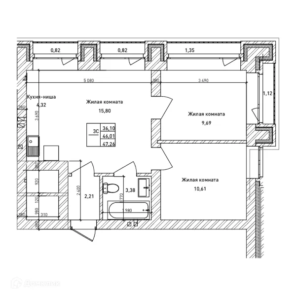 2 комн. квартира в Новосибирске в ипотеку от 66 609 руб/месяц