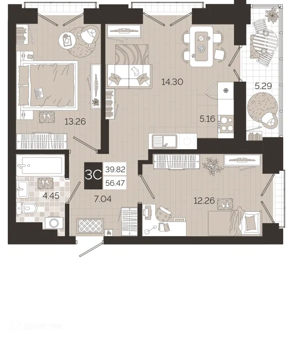 2 комн. квартира в Новосибирске в ипотеку от 58 940 руб/месяц