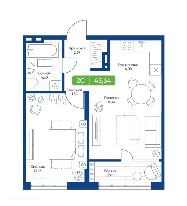 1 комн. квартира в Новосибирске в ипотеку от 46 590 руб/месяц