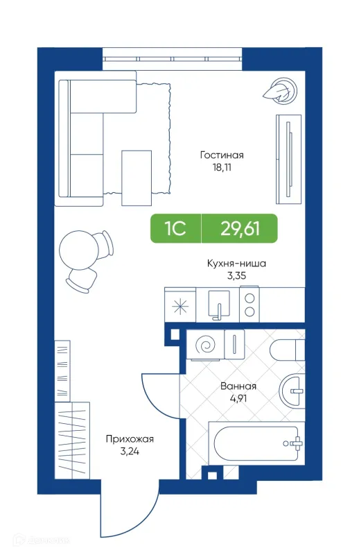 Студия квартира в Новосибирске в ипотеку от 34 924 руб/месяц
