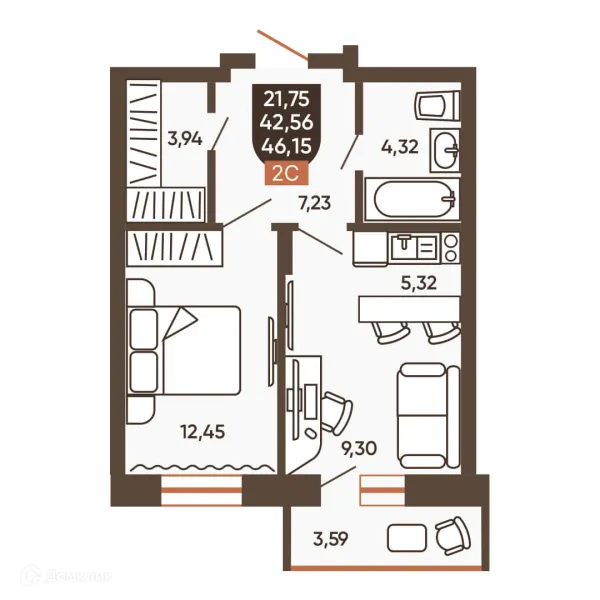 2 комн. квартира в Новосибирске в ипотеку от 45 691 руб/месяц