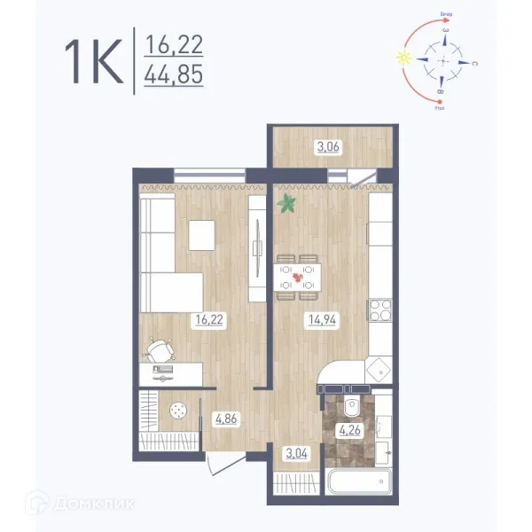 1 комн. квартира в Новосибирске в ипотеку от 34 791 руб/месяц