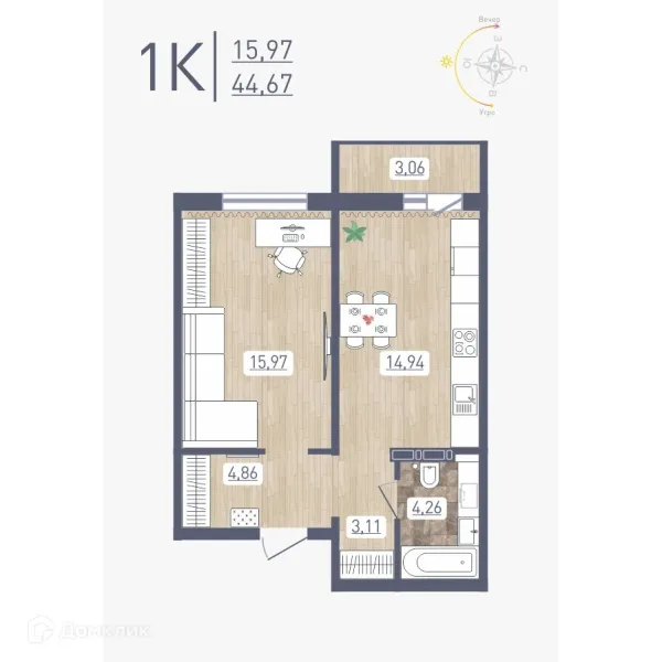 1 комн. квартира в Новосибирске в ипотеку от 30 875 руб/месяц