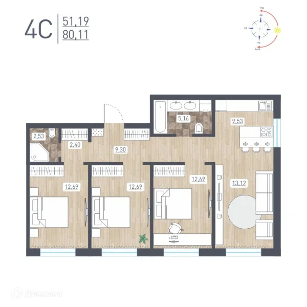 4 комн. квартира в Новосибирске в ипотеку от 54 831 руб/месяц