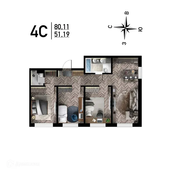 4 комн. квартира в Новосибирске в ипотеку от 61 928 руб/месяц