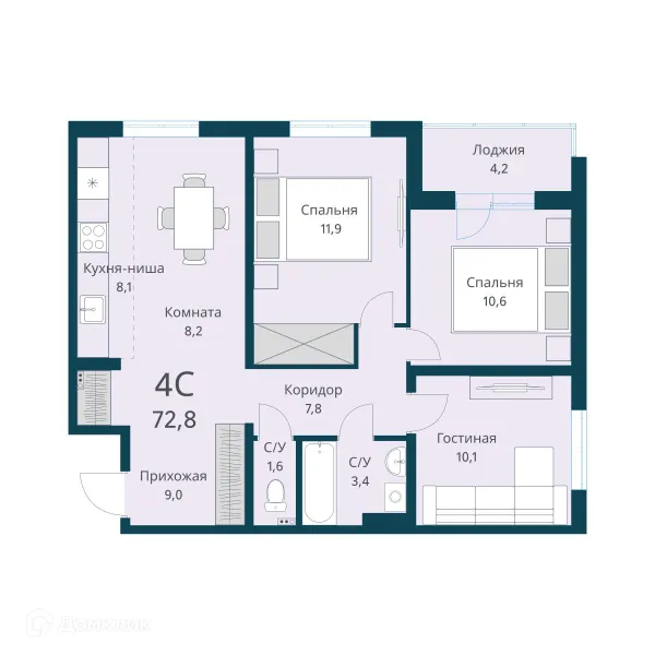 4 комн. квартира в Новосибирске в ипотеку от 90 732 руб/месяц