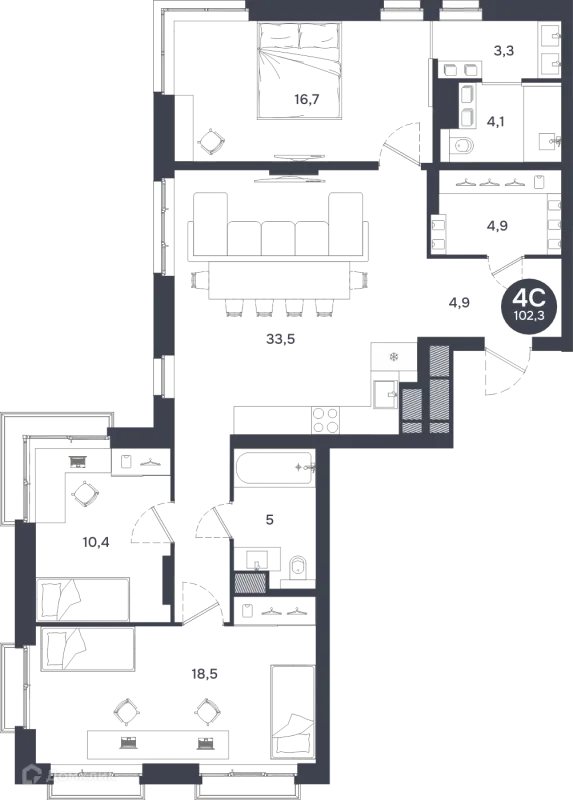 4 комн. квартира в Новосибирске в ипотеку от 142 870 руб/месяц