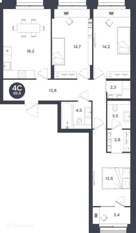 4 комн. квартира в Новосибирске в ипотеку от 115 792 руб/месяц