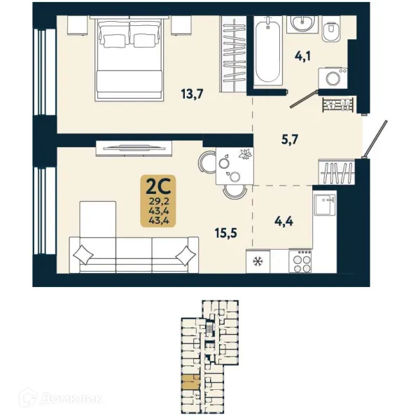 2 комн. квартира в Новосибирске в ипотеку от 57 778 руб/месяц