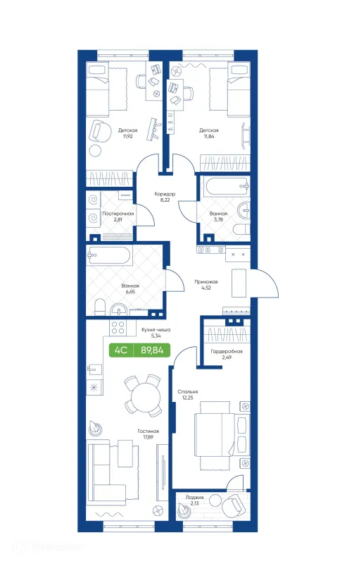 4 комн. квартира в Новосибирске в ипотеку от 129 744 руб/месяц