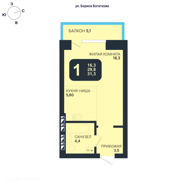 Студия квартира в Новосибирске в ипотеку от 46 590 руб/месяц